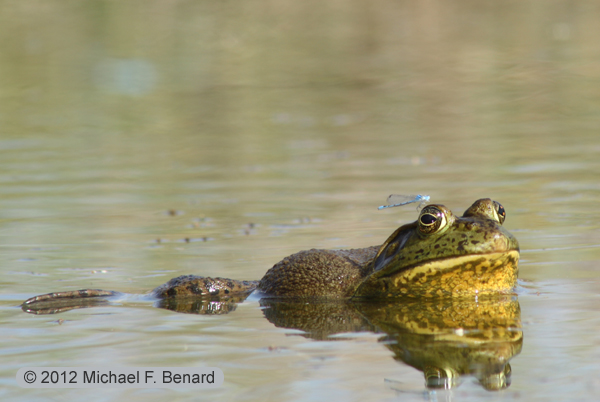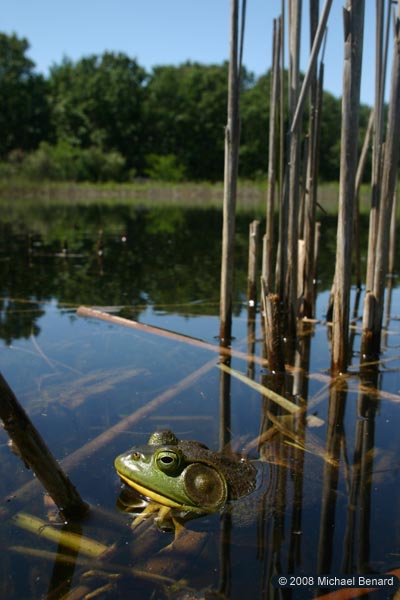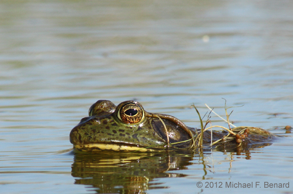 Bullfrog (Rana catesbeiana) photographed in Livingston County, Michigan. Not only are adult bullfrogs our largest North American frog, but Bullfrog tadpoles will also reach an enormous size. |
